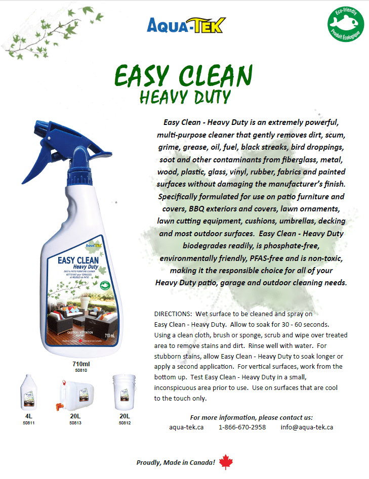 Aqua-Tek Easy Clean Heavy Duty 710ml – An extremely powerful, eco-friendly cleaner that removes tough dirt, grease, and outdoor buildup while remaining safe on manufacturer finishes.