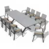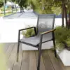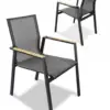 Atlas Dining Chair– this aluminum collection is complimented by textilene sling and carefully placed teak arm accents. Aluminum frames provide durability and strength, while textilene seats offer comfort and breathability. The teak accents add a touch of natural beauty, creating a visually appealing contrast with its sleek design.