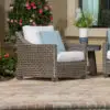LOW MAINTENANCE | Rinsing with water is all woven furniture needs. Avoid using pressure washers.