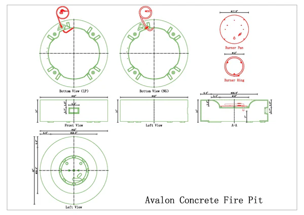 A Pyromania fire feature is more of a work of art than a piece of furniture and our aim is to have one of our fire features be a prominent fixture in your outdoor living space. What fire lover wouldn’t want that? Avalon fire pit is crafted from hand-laid and reinforced high-performance concrete which makes it extremely durable yet light. Equipped with push button ignition for convenience and to keep your hands at a safe distance away from the burner during start-ups. It also includes an auto flame-out shut-off valve to ensure safe operation every time. The CSA certified 50,000 BTU burner’s unique design directs the fire to gather in the center, which creates a larger flame and more heat output than conventional fire pit rings. Bring on the heat and the fun with PyroMania!