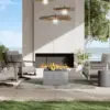 Bellino Coffee Table by Ebel -elevate your backyard parties with the Bellino Tables. Available in aluminum with a concrete-style finish, this classic look pairs well with any furniture set. Create an inviting space with the ambiance only a real fire can create.