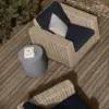 Bellino End Table by Ebel -elevate your backyard parties with the Bellino Tables. Available in aluminum with a concrete-style finish, this classic look pairs well with any furniture set. Create an inviting space with the ambiance only a real fire can create.