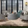 Bellino Round Fire Pit by Ebel – Elevate your backyard parties with the Bellino Fire Pit. Available in aluminum with a concrete-style finish, this classic look pairs well with any furniture set. Create an inviting space with the ambiance only a real fire can create. Always operate fire pits in an open, well-ventilated area. The offset, adjustable burner combines the best of both worlds – making it possible to either warm those that gather around it or simply provide cozy lighting for a relaxing evening.