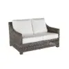 Ebel: Avallon Loveseat: with 6″ seat and backrest cushions in your choice of fabric. Avallon’s extensive line of curved and straight sectionals, deep-seating and dining brings timeless style to any outdoor space. Avallon is available in Hickory or Smoke, intricate weaves full of natural tones which coordinate beautifully with countless fabrics and environments.