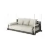 The Verona swinging daybed, with a woodgrain-style frame available in Smoke or Chestnut finishes. Suspend it with the included thick, white ropes and snuggle up with the plush back and bolster pillows. The twin mattress-sized seat cushion makes it possible to either stretch out or pile in with family and friends while enjoying a sweet, summer afternoon.