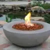 The Elementi Lunar Bowl fire table features a glass-fiber reinforced concrete smooth finish in light gray. The table is easy to set up with a pre-attached 10-ft hose with a regulator for connection to a propane tank. Includes: