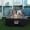 The Sofia is the new and improved square fire table featured on the Elementi Plus line. The top of the unit is created with marble porcelain while the base is handcrafted to precision using glass-fiber reinforced concrete, which proves to be both lightweight and durable against the elements. The burner is constructed with 16 gauge 304 stainless steel that provides a generous BTU output of 60,000, where the warmth of the flames can be felt across the patio or deck. The Sofia comes in a Bulgaria black color that provides a luxurious feel in your back yard.
