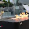 The Valencia is a new and improved rectangular fire table featured on the Elementi Plus line. The top of the unit is created with marble porcelain while the base is handcrafted to precision using glass-fiber reinforced concrete, which proves to be both lightweight and durable against the elements. The burner is constructed with 16 gauge 304 stainless steel that provides a generous BTU output of 60,000, where the warmth of the flames can be felt across the patio or deck. The Valencia comes in a bulgaria black color that provides a luxurious feel in your back yard.