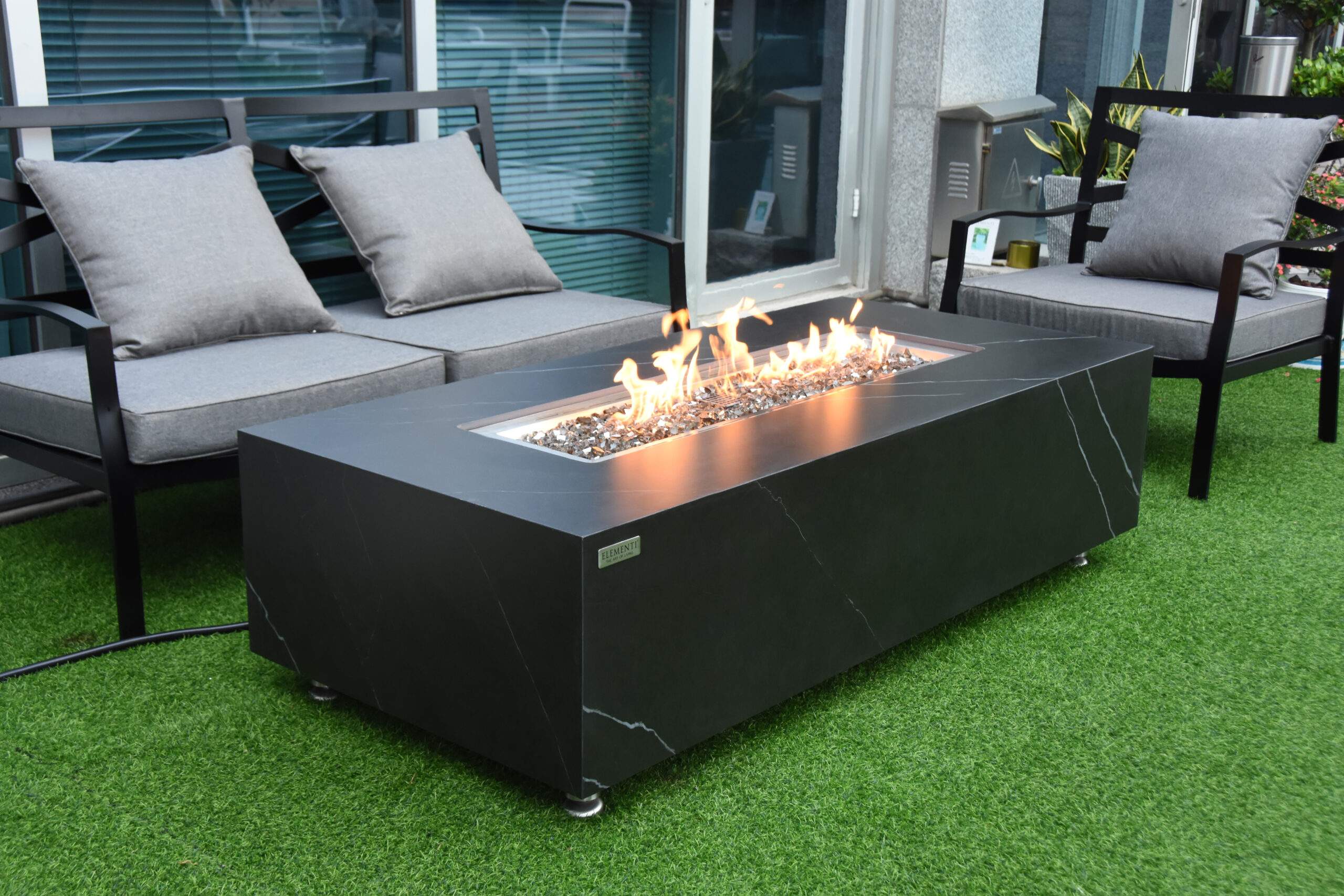 Elementi Plus – Varna Porcelain Fire Table – Black Rectangle