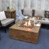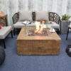 The Modeno Wilton fire table features a glass-fiber reinforced concrete textured finish in redwood. The table is easy to set up with a pre-attached 10-ft hose with a regulator for connection to a propane tank.