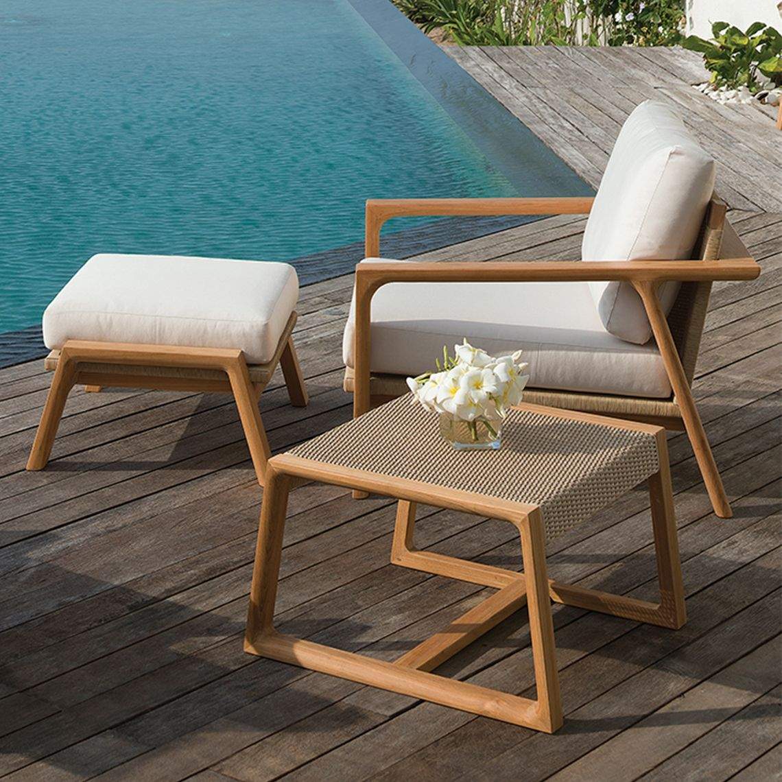 The Hana collection intertwines modern aesthetics with timeless craftsmanship. Solid Grade A teak frames are complemented by the contrasting texture of our Sisal all-weather wicker. The lounge pieces, enhanced by sling seat decks beneath the cushions, invite moments of sheer relaxation. Designed by Gower + Woolf.