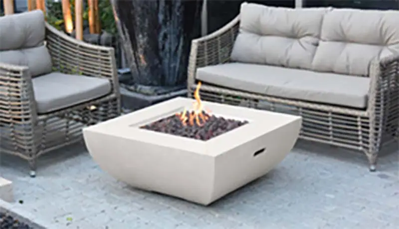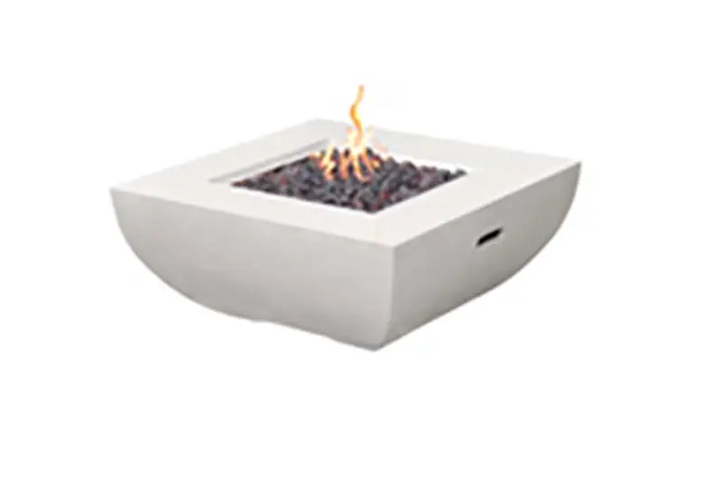 The Elementi Florence fire table features a glass-fiber reinforced concrete smooth finish in cream white. The table is easy to set up with a pre-attached 10-ft hose (3/8″) with a ½” brass quick connect end to connect to a natural gas source.