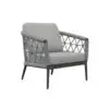Muses Fishnet Club Chair – Crafted from high quality aluminum and marine-grade rope, it is an embodiment of sophistication and durability. The lightweight yet sturdy aluminum frames, finished with a weather-resistant powder coat, are meticulously intertwined with marine grade rope, renowned for its strength, UV resistance and ability to withstand harsh weather conditions.