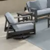 Ebel: Novara Club Swivel Rocker with 6″ seat and backrest cushions in your choice of fabric. The Novara Collection offers a seating experience that seamlessly combines comfort and style. With its wide arm design and comfortable seat, it provides both visual appeal and a cozy place to relax.