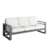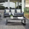 Palermo Conversation Set by Ebel is durable with Rust-proof aluminum frames that are powder coated for a smooth, beautiful finish that will last for years to come. Sun, wind, rain – these products can withstand the seasons and their elements. Ebel is all about modern style, easy customization, and luxurious comfort. Whether you are entertaining near the water, on your rooftop, or a balcony, the collection can be configured to fit and enhance your space. Its sleek, matte, Graphite finish, plush cushions, and open frame design give it a unique visual appeal, while sturdy, all-weather construction ensures lasting performance across the seasons. A durable aluminum frame, all-weather cushions, and fade-resistant Sunbrella fabric are made to endure in any outdoor setting, rain or shine.
