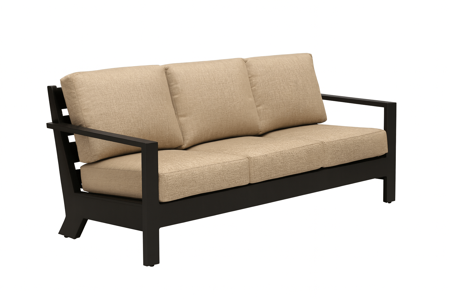 Riverside Sofa– Crafted from premium-grade aluminum, the Riverside Collection from 2026 blends strength, modern design, and lasting durability. Each frame is finished with a weather resistant powder coat, ensuring resilience against the elements while maintaining a sleek, contemporary aesthetic. The clean lines and robust construction make Riverside a versatile choice for a wide range of outdoor settings. Its modular design allows for flexible configurations, whether styled as a sectional, corner piece, or stand-alone seating, making it an adaptable centerpiece for any patio or terrace. With its timeless silhouette and enduring build, the Riverside Collection delivers both sophistication and practicality, creating an inviting space for outdoor living that lasts season after season. Riverside features in Textured