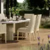 Siena Dining Side Chair with woven-in reticulated foam Quick-Dry cushions. The Siena Collection is distinguished by its woven-in reticulated cushions, which not only contribute to a clean and elegant aesthetic but also provide exceptional comfort.