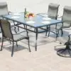 Springfield provides extreme comfort paired with a timeless design. Padded high back chairs and in-laid glass table tops serve as a low maintenance option for customers.