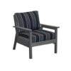Sleek, modern and clean, this outdoor club chair frame is perfect for any outdoor space! Made of recycled plastics this chair is durable, comfortable and meant to withstand the outdoors.
